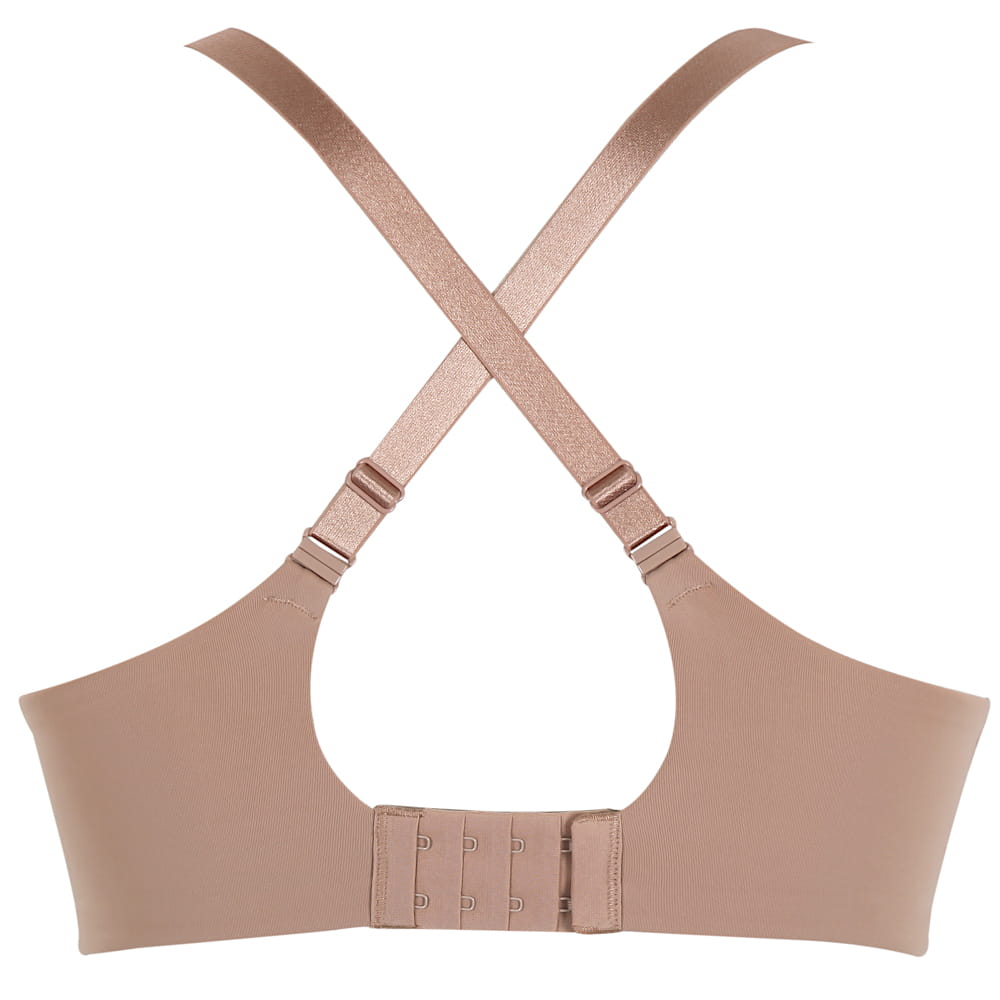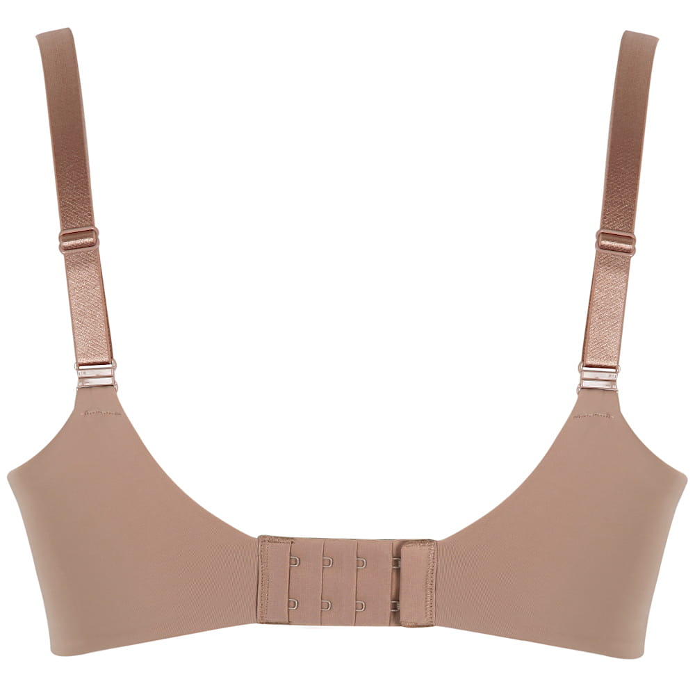 365 T-Shirt Bra to model z usztywnianą, termicznie formowaną miseczką z wysokim mostkiem - idealny pod gładkie koszule czy t-shirty. Miseczki z zewnątrz pokryte są aksamitnie gładką i mięciutką dzianiną, która daje efekt drugiej skóry. Szeroki pas obwodu zapewnia solidne podtrzymanie oraz idealnie wygładza plecy. Dodatkowo ramiączka w tylnej części mają opcję spięcia na krzyż, aby dało się je ukryć pod koszulkami typu bokserka.