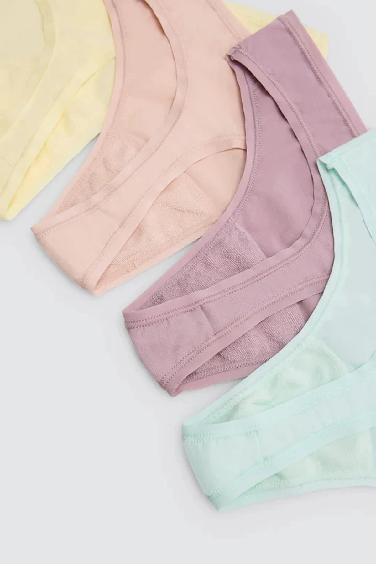 Klasyczne w kroju stringi w kolorze pastelowym (jasny żółty oraz pudrowy róż). Wykonane z bawełny. Figi sprzedawane w 2-paku.