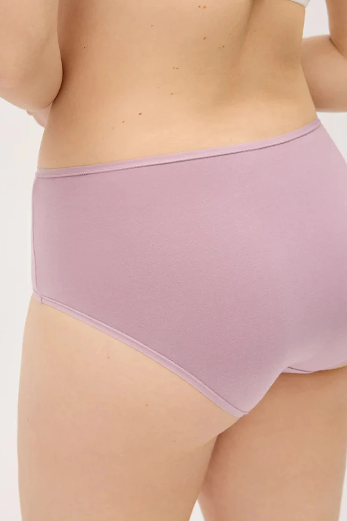 Klasyczne w kroju figi, z wysokim stanem (wysokość maxi) w kolorze pastelowym - liliowym oraz miętowym - wykonane z bawełny. Figi sprzedawane w 2-paku.