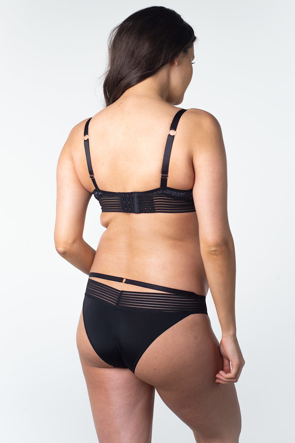 Ambition to biustonosz bez fiszbin o kroju plunge (niski mostek) z miseczkami termicznie formowanymi z lekkiej pianki. Ich wewnętrzna warstwa z elastycznej siateczki daje poczucie wygody i idealnego dopasowania, a po odpięciu miseczek dyskretnie przysłania część piersi. Zamiast tradycyjnego klipsa w Ambition zastosowano magnetyczne zapięcie w kolorze różowego złota, które dla niewtajemniczonych jest jedynie pięknym detalem i nie zdradza przeznaczenia biustonosza ;)
