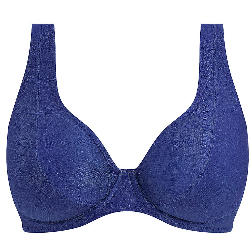 Biustonosz kąpielowy Arizona Waves High Apex z miękką miseczką na fiszbinie o kroju plunge (z niskim mostkiem) pięknie, ale nie nachalnie, eksponuje dekolt. Wydłużone miseczki przechodzące w ramiączka (w modnym stylu high apex) optycznie wysmuklają sylwetkę i dodają nietuzinkowego szyku. Piersi są uniesione i ładnie zebrane dzięki sprawdzonej konstrukcji miseczek z jednym pionowym cięciem. Stabilny pas obwodu zapewnia piersiom niezawodne podtrzymanie. Możliwość spięcia ramiączek na plecach ułatwi ich równomierne opalenie, a także dodatkową stabilizację piersi w czasie plażowych aktywności.