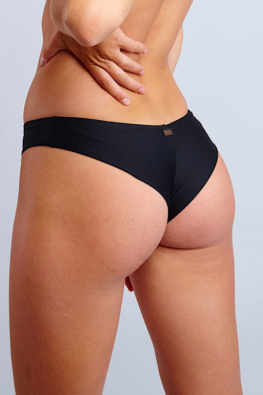 Figi brazylijskie - wycięte na pupie w klasycznym, czarnym kolorze. Pięknie wysmuklają sylwetkę.