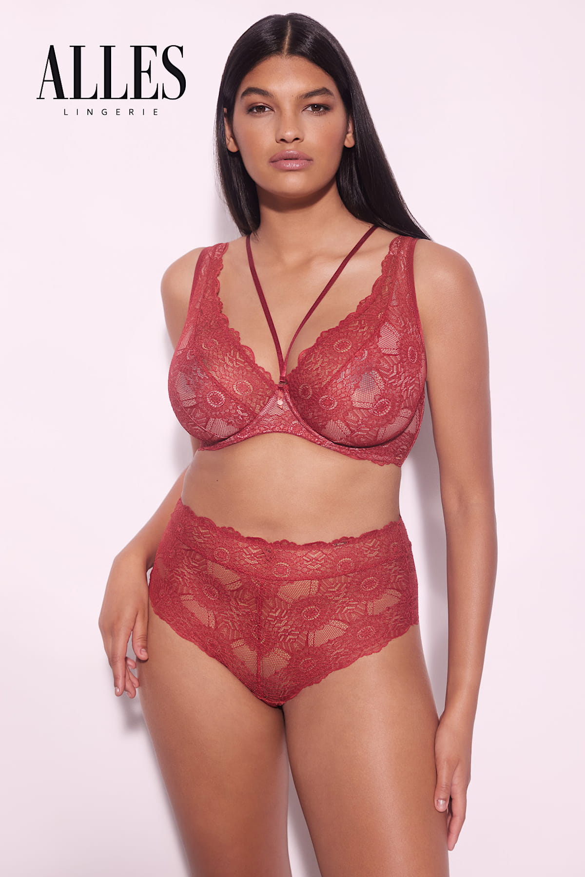 Bohemian Vibe stringi z wysokim stanem, zostały zaprojektowane z kwiatowej koronki w kolorze rusty red. Efektowny tył modelu wykończony paseczkami sprawia, że stringi z kolekcji Bohemian Vibe pięknie podkreślają kształty kobiecego ciała. Połącz stringi z pasującym biustonoszem z kolekcji Bohemian Vibe, aby stworzyć ekskluzywną, pełną jesiennej zmysłowości stylizację!