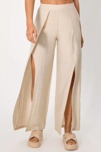 Letnie spodnie z kolekcji Caleta od Ysabel Mora o zwiewnym fasonie zapewniają swobodny, wakacyjny wygląd. Nietuzinkowe rozcięcia nadają im nowoczesnego i świeżego charakteru. Wykonane z mieszanki zawierającej 12% lnu łączącej w sobie przewiewność lnu z miękkością wiskozy - idealnie na upalne lato.