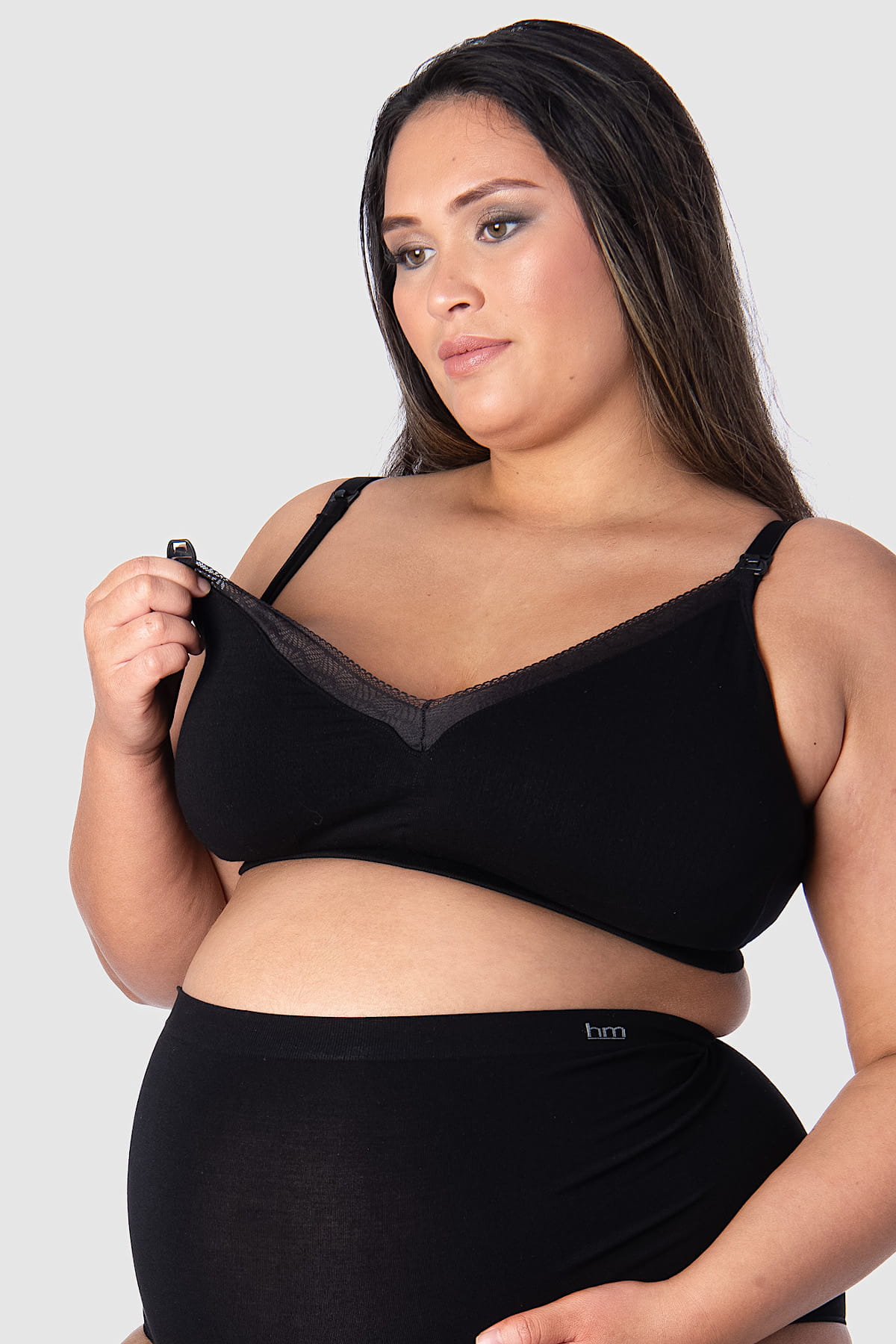Ten biustonosz nie ma fiszbin, więc możesz go śmiało nosić od pierwszych dni karmienia i na końcówce ciąży.