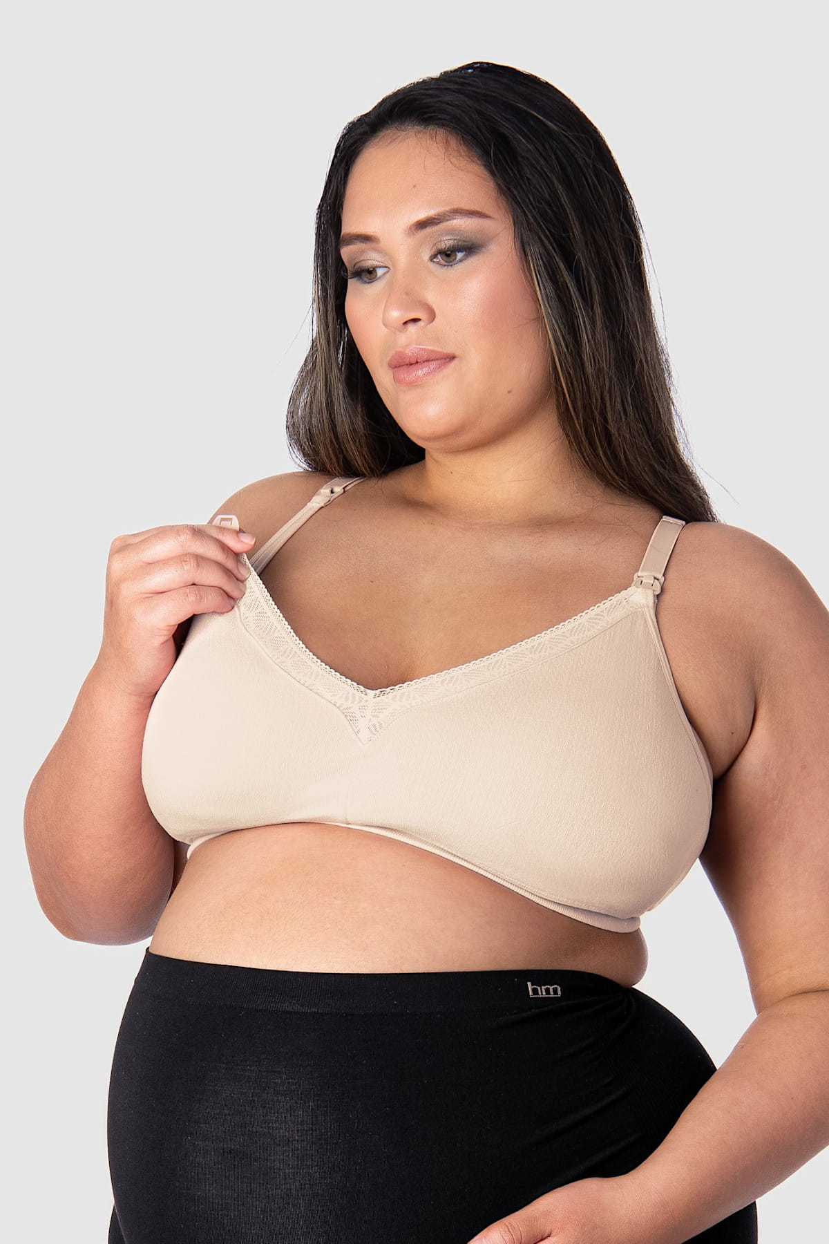 Ten biustonosz nie ma fiszbin, więc możesz go śmiało nosić od pierwszych dni karmienia i na końcówce ciąży.