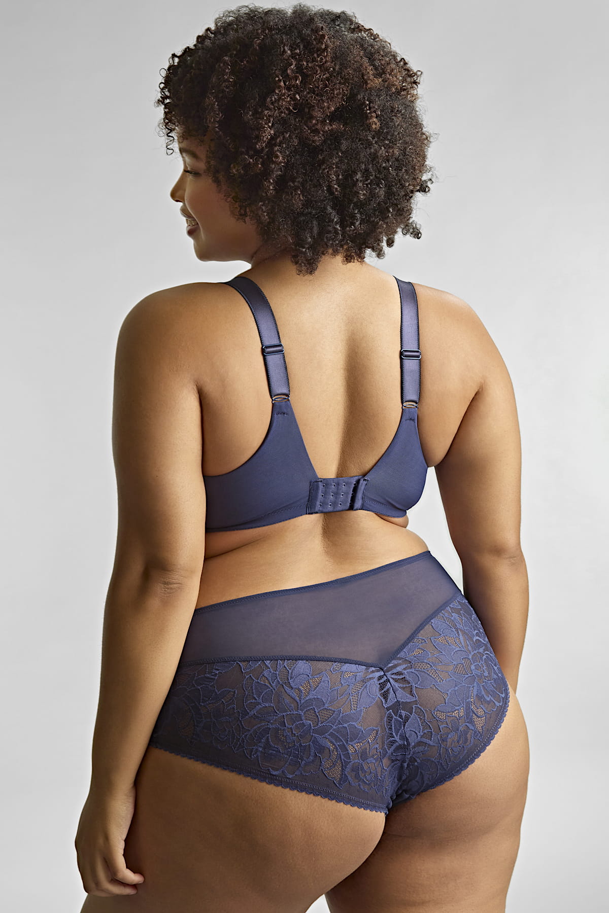 Dream od Sculptresse to bielizna jak ze snu. Atramentowa, pokryta zmysłową, delikatną w dotyku koronką, kusząco przejrzysta wieczorowa piękność, przy bliższym poznaniu okazuje się być świetną bielizną codzienną - wygodną, gładką i zapewniającą piersiom świetny kształt i stabilne podtrzymanie.