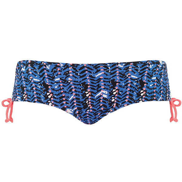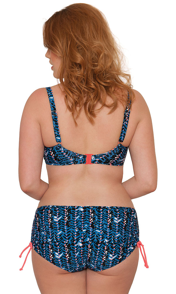 Szorty kąpielowe z regulowana długością nogawek z serii Instinct od Curvy Kate. Model wykonano z elastycznego materiału pokrytego abstrakcyjnym nadrukiem w odcieniach granatu i czerni z neonowymi akcentami