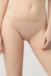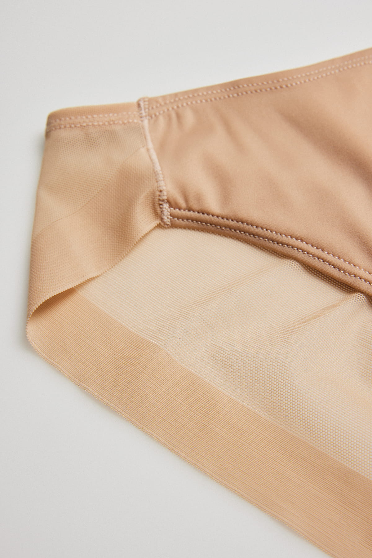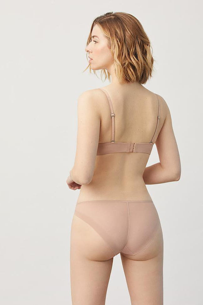 Figi o klasycznym kroju z niskim stanem oraz mocniej wyciętym tyłem. Przód wykonany z gładkiej dzianiny. Tył z półprzejrzystej siateczki wykończony bezszwowo - krawędzie fig będą niewidoczne nawet pod bardzo obcisłymi ubraniami. Figi ładnie dopasowują się do ciała i dają efekt "drugiej skóry".