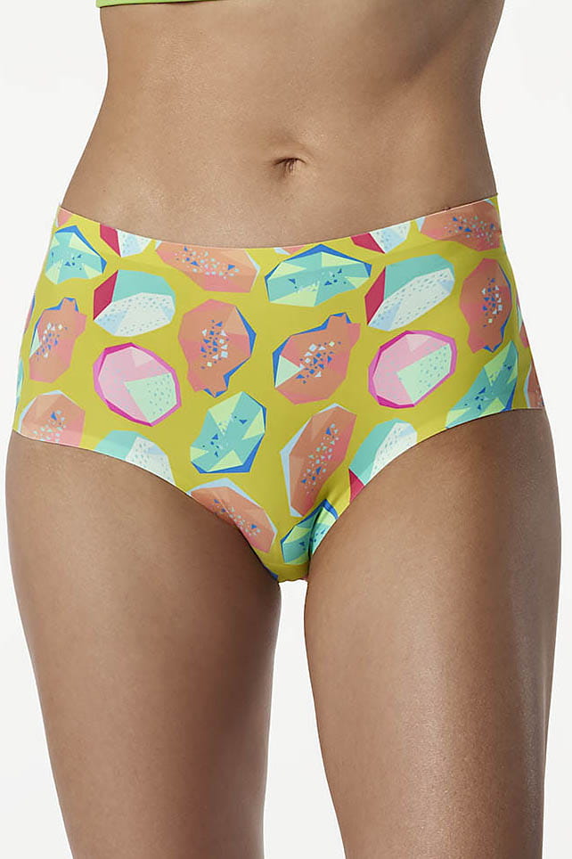 Juicy Slice to owocowa rewolucja orzeźwienia, która idealnie zmiksuje się z pastelowymi odcieniami Twoich letnich kolekcji. Geometryczne mango, kiwi i gruszka w cudownych odcieniach napełni Cię energią. Zasmakuj w nowej limitowanej edycji Juicy majtek damskich Wiosna/Lato 2023 od Paloma Pink.