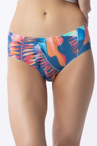 Figi z serii JUNGLE, dzięki zastosowaniu głębi kolorów oraz tropikalnego, liściastego printu dodadzą szczypty egzotyki każdej stylizacji. Wyróżniają się zastosowaniem elastycznej, szybkoschnącej dzianiny oraz bezszwowym krawędziom dzięki czemu stają się niewidzialne pod ubraniem.