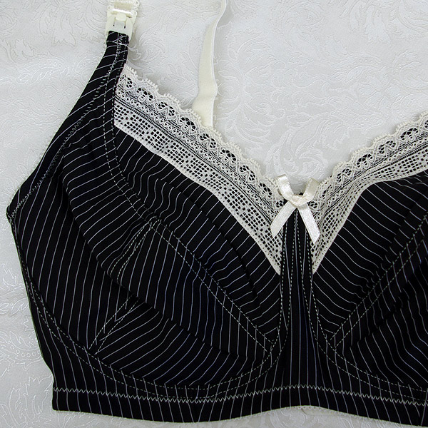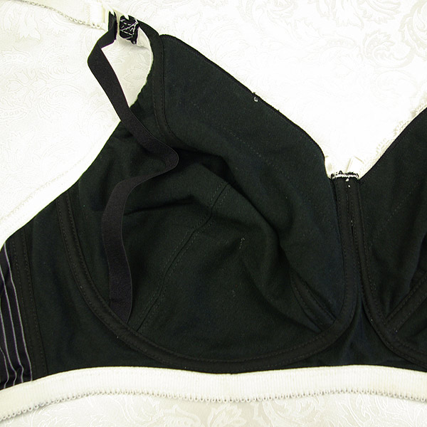 Ramiączka odpinane wygodnymi klipsami są zabezpieczone przed odskakiwaniem dodatkową elastyczną tasiemką wewnątrz miski. Wnętrze misek pokrywa miękka dzianina bawełniana. Czterostopniowa regulacja obwodu pozwala na dopasowanie stanika do zmieniającego się ciała.