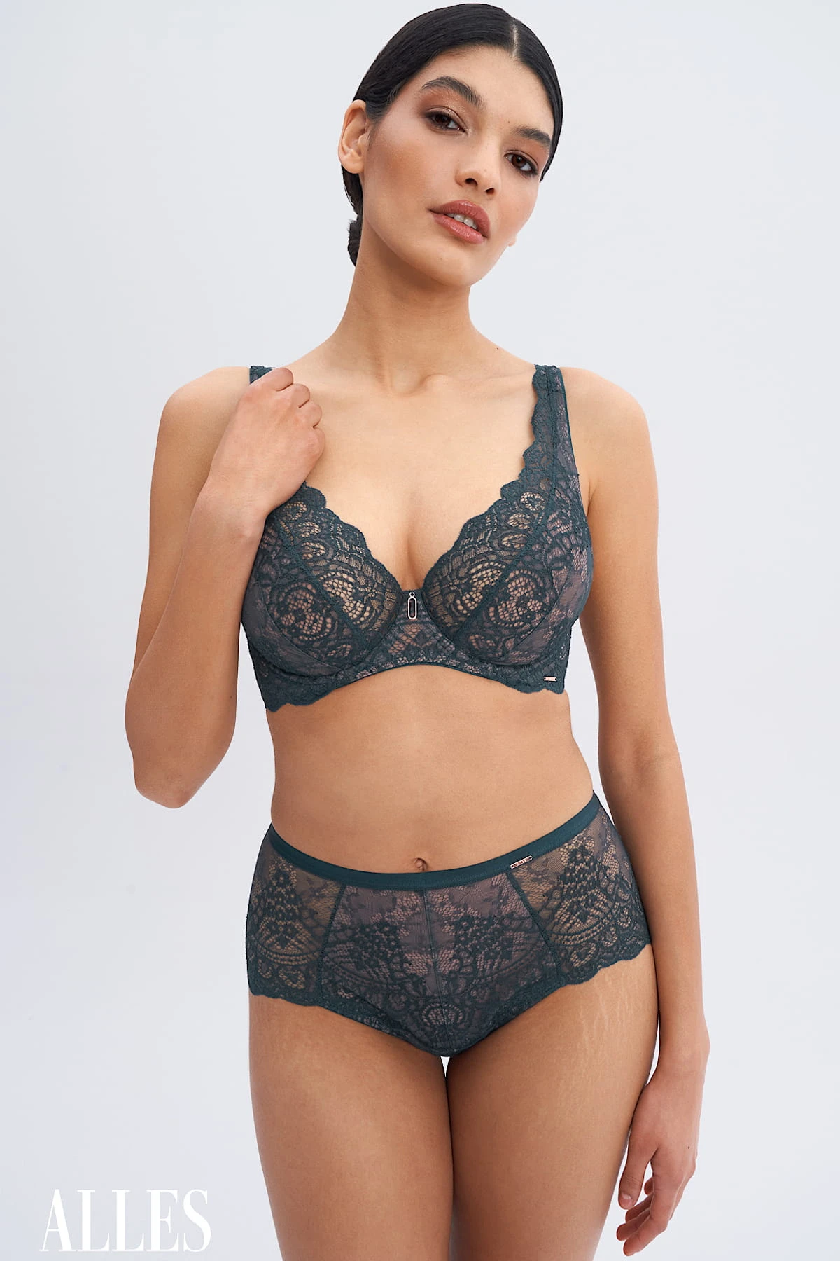 Szlachetny i ponadczasowy odcień, pełen elegancji i tajemnicy, który doskonale komponuje się z koronką, podkreślając jej strukturę i elegancję.