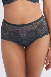Fason z wysokim stanem optycznie podkreśla talię i delikatnie modeluje sylwetkę, zapewniając wygodę noszenia przez cały dzień. Pełny krój fig osłania pośladki w całości, dając poczucie komfortu i lekkości. Idealne zarówno jako codzienna bielizna, jak i element luksusowej stylizacji z nutą zmysłowości.