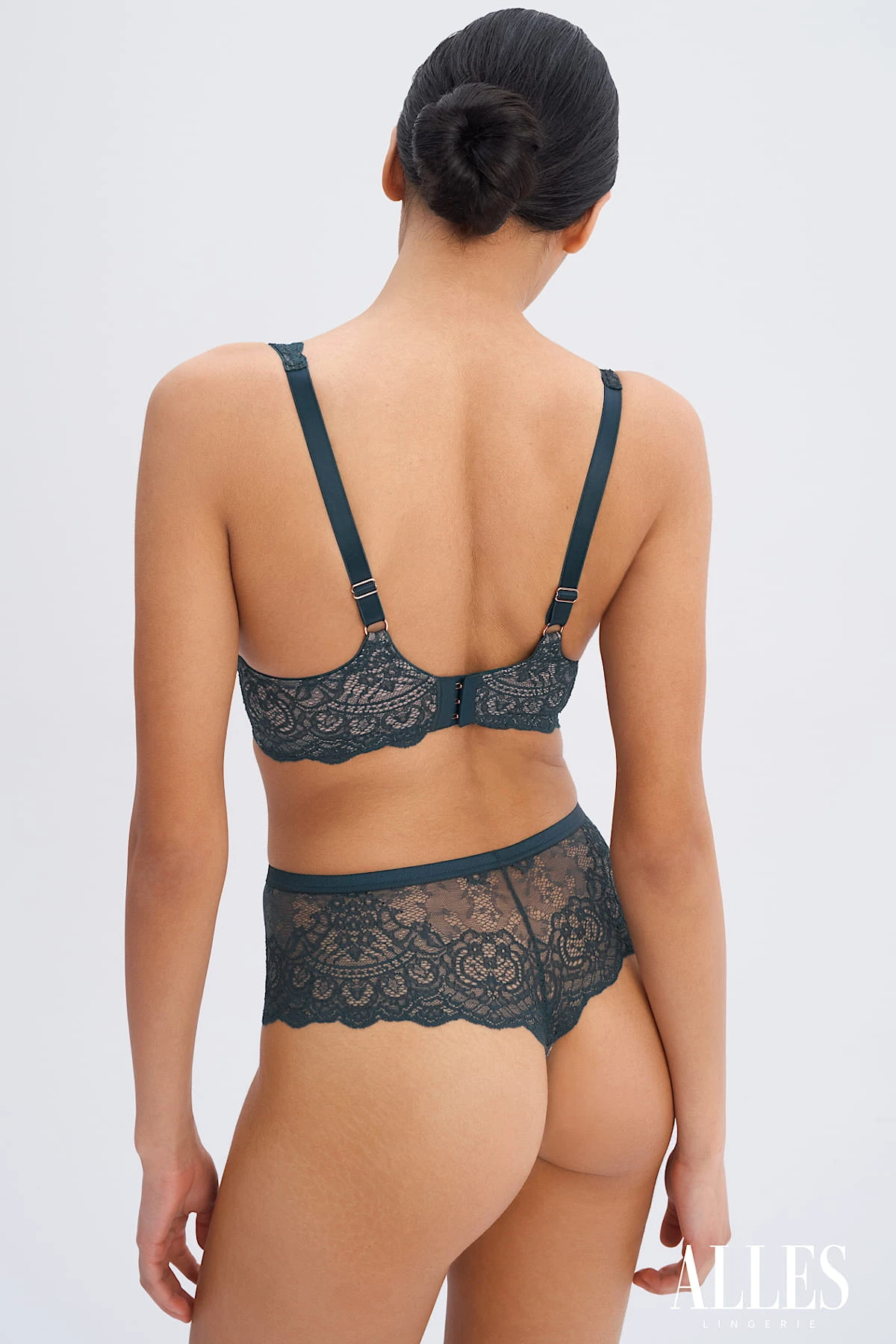 Marea stringi z wysokim stanem zostały zaprojektowane z elastycznej koronki, która ozdobiona jest efektownym haftem. Wysoki stan stringów i odsłonięte pośladki pięknie podkreślają kształty kobiecego ciała. Sprawdzą się jako ponętna bielizna codzienna oraz jako model na specjalne okazje.