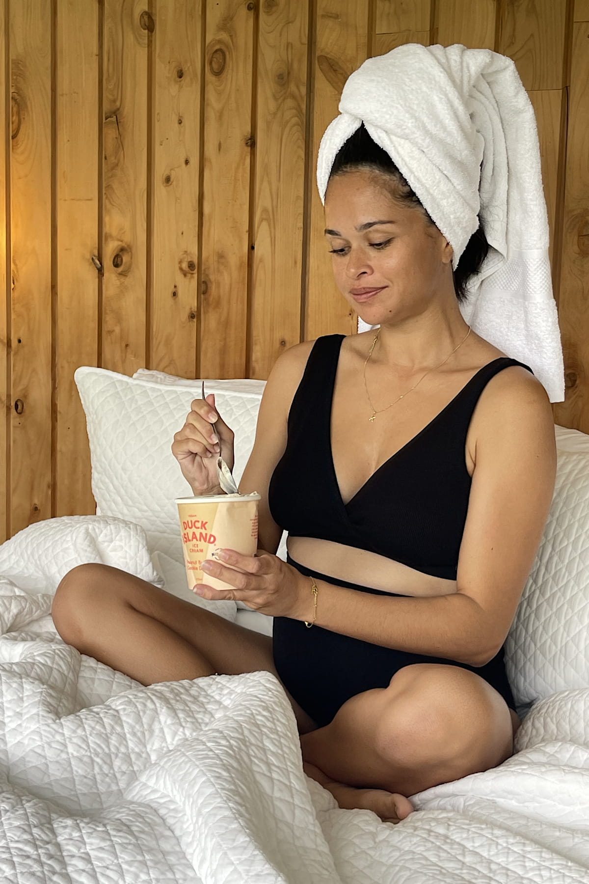 Komfortowa braletka z wiskozy bambusowej z kopertowym dekoltem umożliwiającym karmienie piersią.