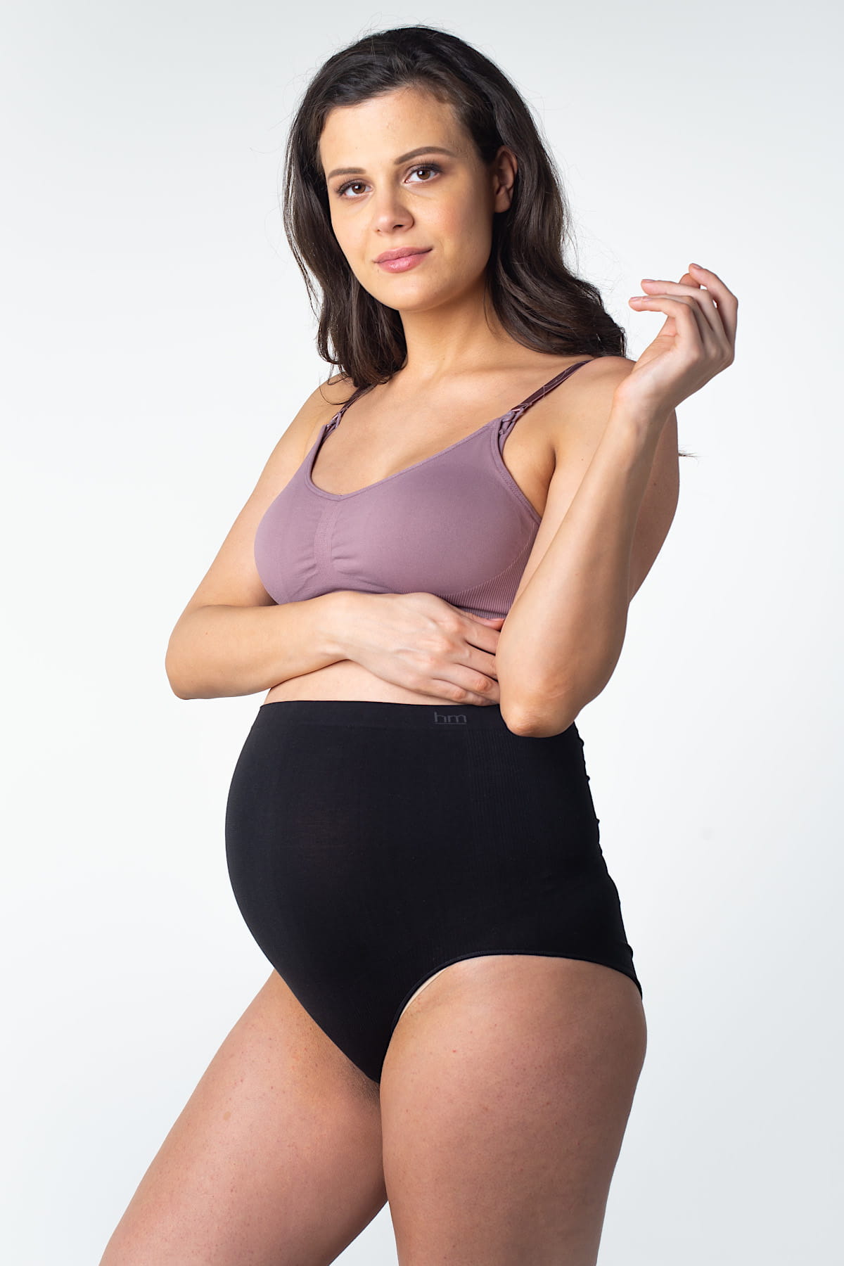 Figi ciążowe z wysokim stanem z mieszanki bawełny i dzianiny bambusowej.