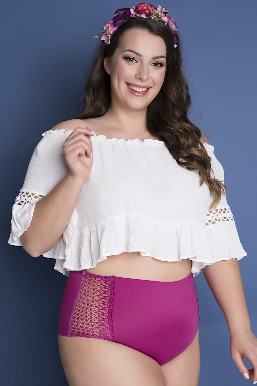 Wysokie figi starannie wykonane w bezszwowej technologii JULIMEX INVISIBLE LINE®. Model w wyjątkowo intensywnym, purpurowym odcieniu urozmaicają koronkowe wstawki, umieszczone na bokach. Elastyczna, gładka dzianina oraz krój maxi sprawiają, że figi będą delikatnie modelować sylwetkę.