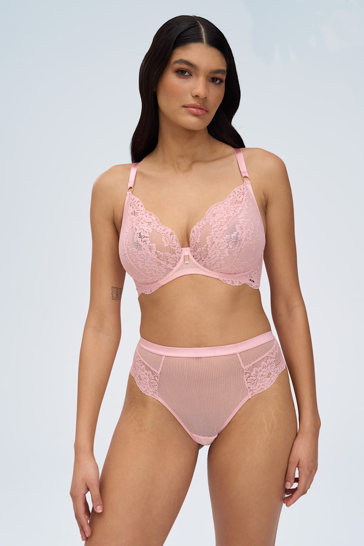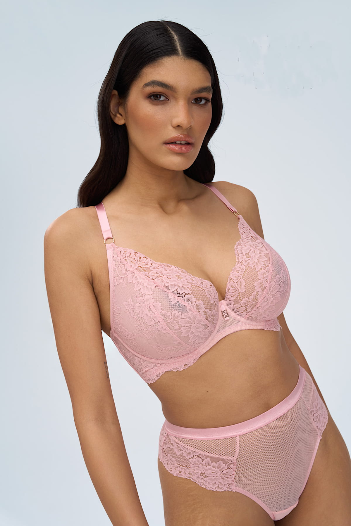 Powder Whisper M – Pudrowy Szept to bielizna dla kobiet, które w codziennym biegu potrafią marzyć. Delikatny pudrowy róż w duchu blushcore subtelnie łączy romantyczną miękkość z nowoczesną elegancją stając się pastelową odmianą klasycznego nude. Włoska koronka inspirowana retro, zestawiona z transparentnym plenem, nadaje lekkości i finezji każdemu detalowi. Powder Whisper M to codzienny luksus –marzenia o miłości – przemienione w zmysłową opowieść, w której kobiecość i delikatna siła naturalnie splatają się z codzienną elegancją. Dobierz figi z kolekcji i stwórz zestaw pełen subtelnego uroku i współczesnej, romantycznej finezji.