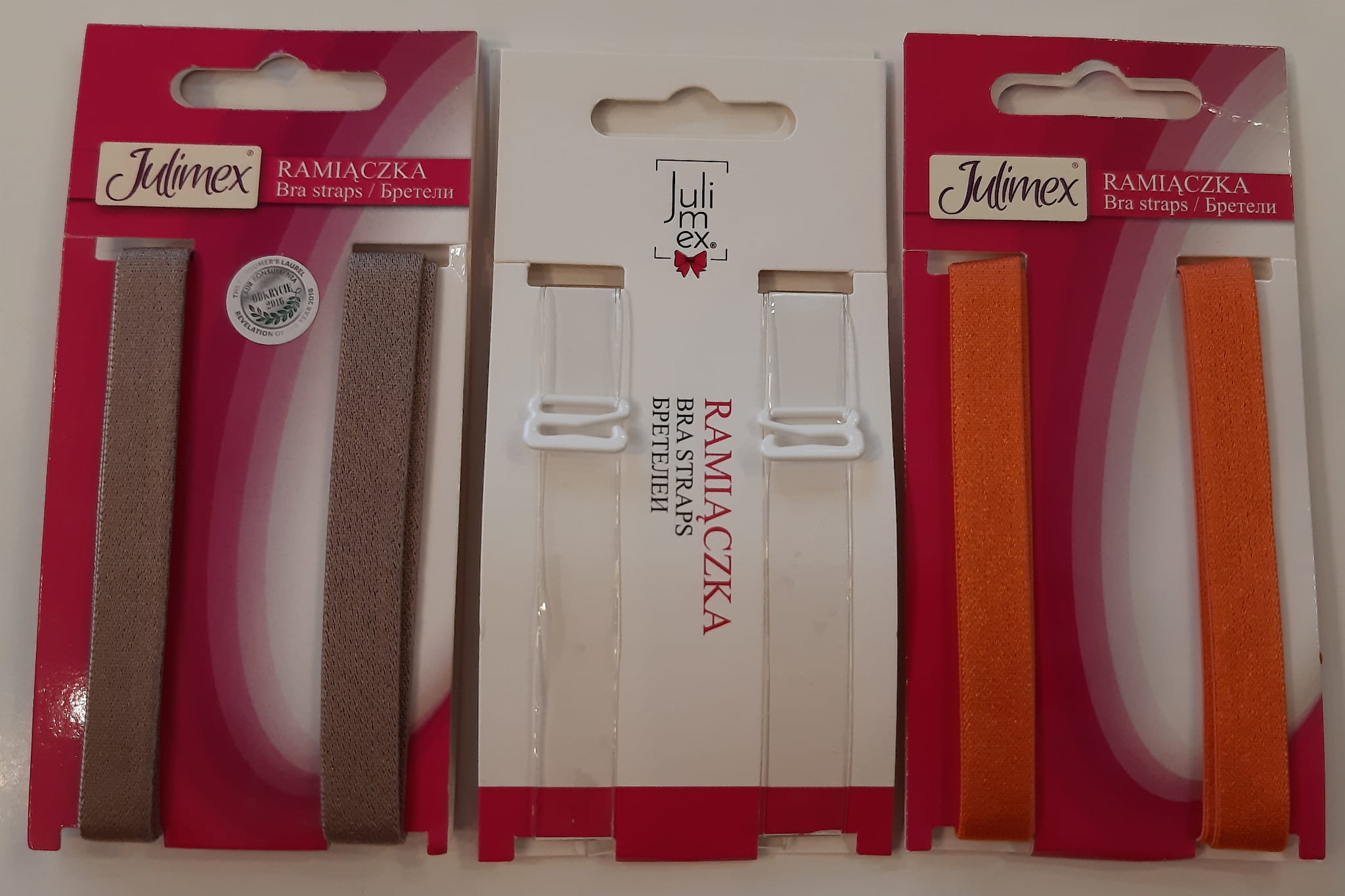 Odpinane regulowane ramiączka z elastycznej taśmy o szerokości 10 mm. Opakowanie zawiera 1 parę ramiączek w wybranym kolorze.