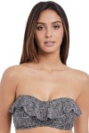 Delikatnie usztywniane bikini o kroju bandeau z zalotną falbanką i nadrukiem w drobne cętki - Run Wild