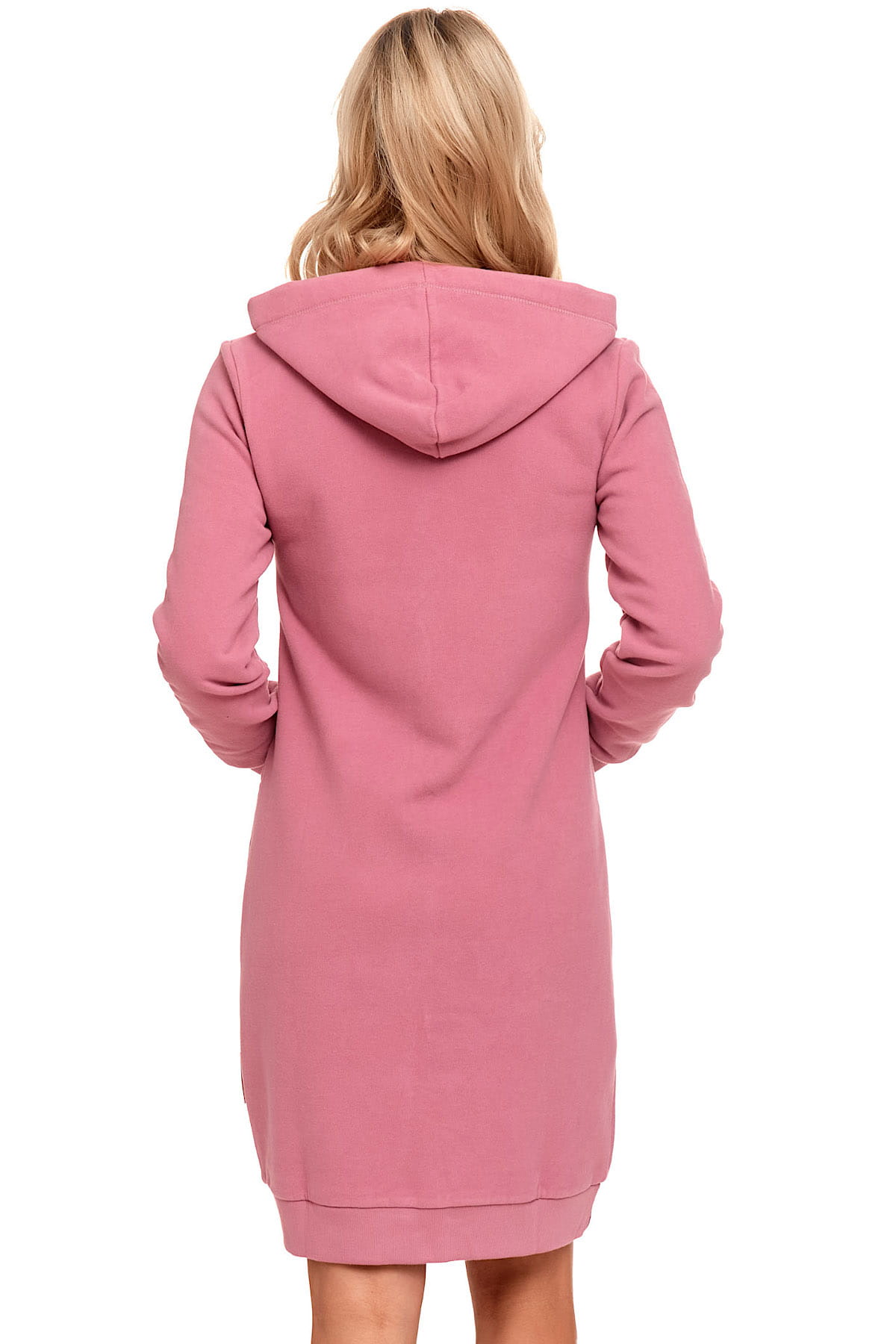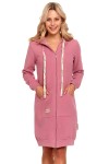 Różowy szlafrok z bawełny organicznej z kapturem i kieszeniami