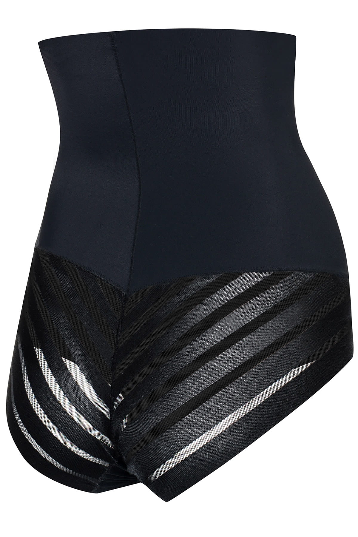 Majteczki w stylu klasycznym z tyłem wykończonym ultracienkim laserowo ciętym materiałem w subtelne pasy.