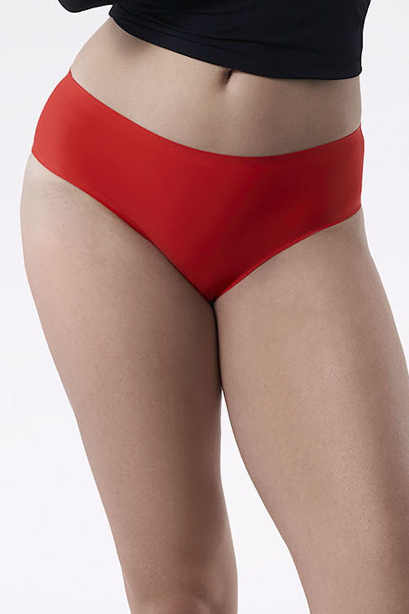 Majtki w stylu klasycznym z tyłem wykończonym cienkim, laserowo ciętym, gładkim materiałem.