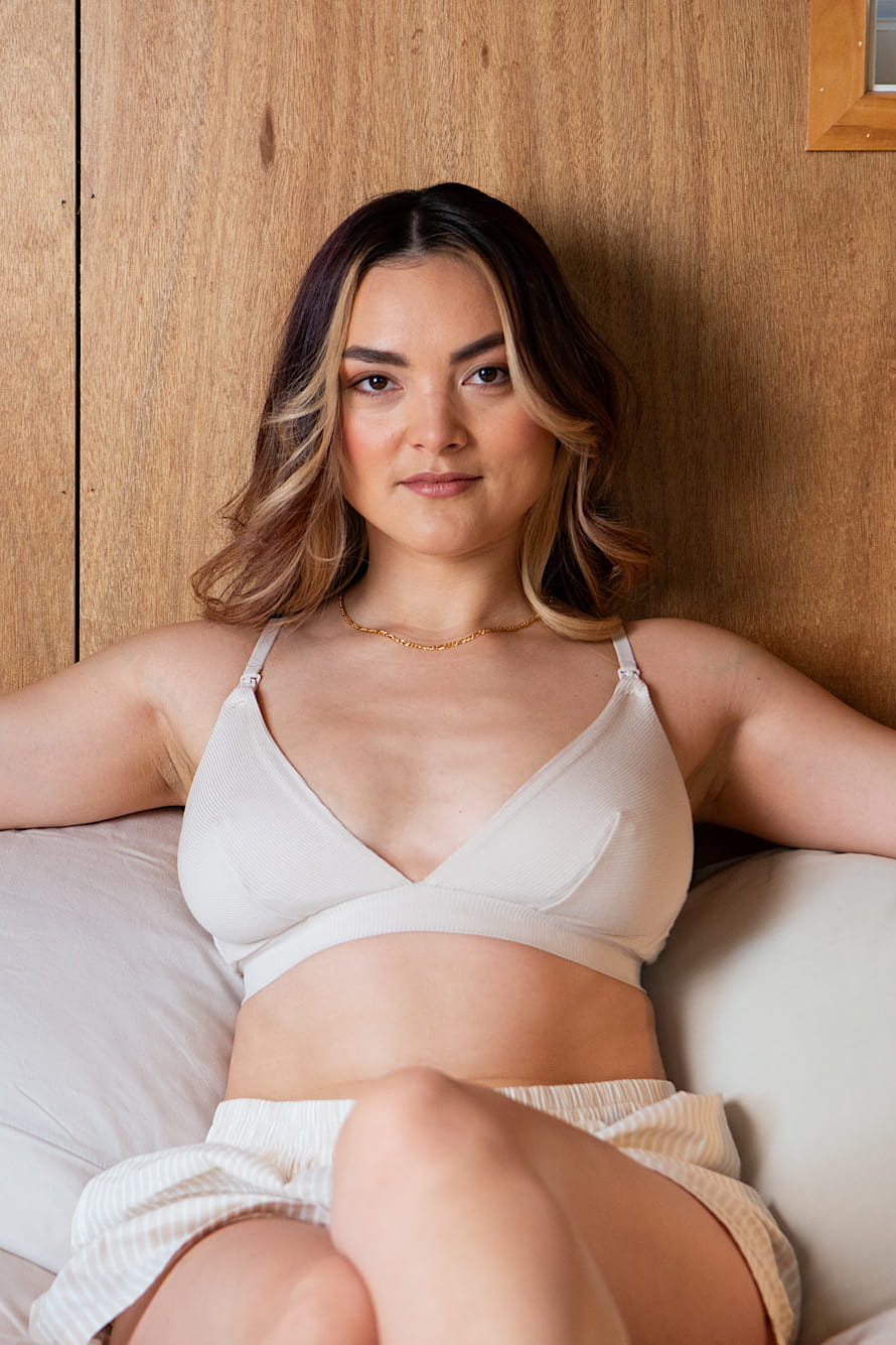Solace Multifit nowozelandzkiej marki Hotmilk to codzienny, bardzo wygodny, ale jednocześnie stylowy biustonosz do karmienia piersią. Prążkowana dzianina z domieszką modalu jest niesamowicie miła w dotyku, a trójkątne miseczki i cienkie ramiączka dodają biustonoszowi lekkości i uroku.