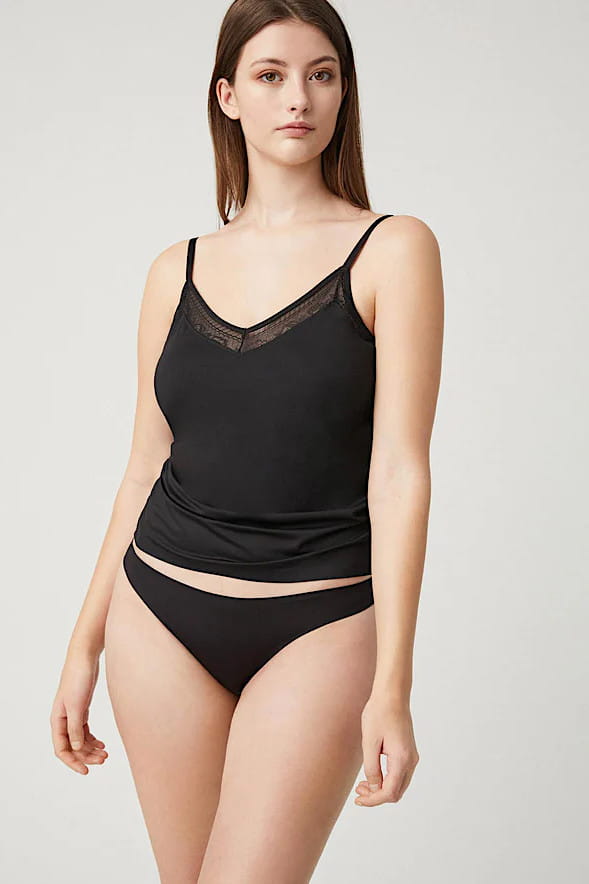 Klasyczne w kroju figi z niskim stanem. Przód wykonany z gładkiej, jednokolorowej dzianiny. Tył z gładkiej, półprzejrzystej koronki wykończony bezszwowo - nie będzie odznaczał się nawet pod bardzo obcisłymi ubraniami.