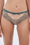 Połączenie klasyki tradycyjnych fig oraz lekkości stringów – to właśnie Splendore figi brazylijskie. Beżowa koronka z zielonym, ornamentowym zdobieniem w połączeniu z lekkim, sensualnym fasonem tworzy wysmakowany zestaw. Połącz figi z pasującym biustonoszem z kolekcji Splendore, aby stworzyć ekskluzywną, pełną sensualności stylizację.