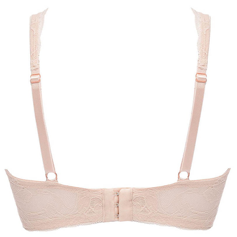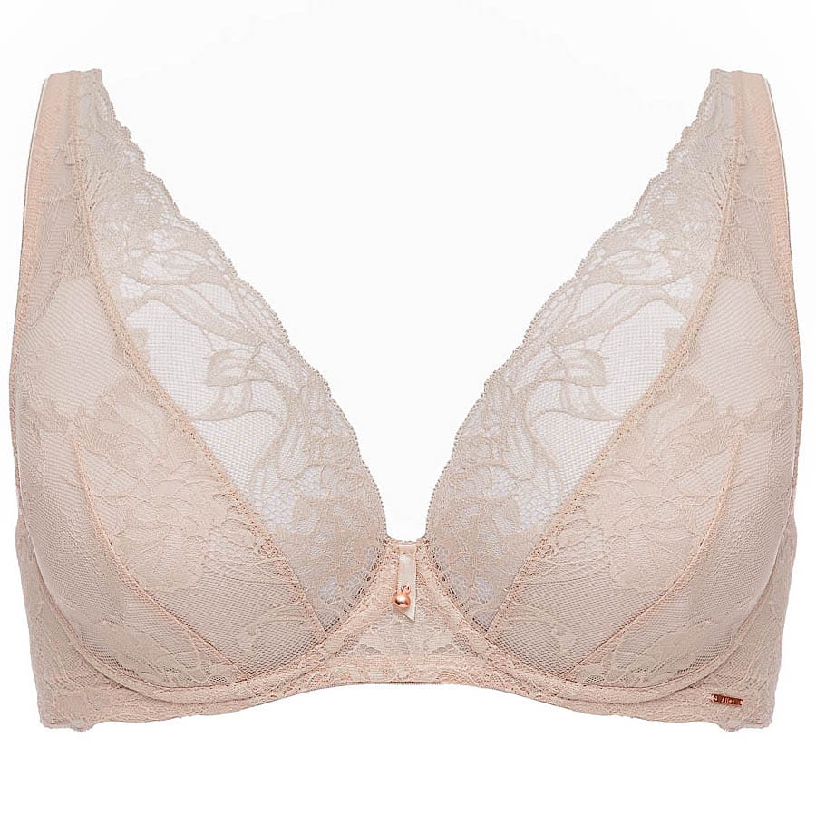 Miękka braletka z kolekcji Sublime została wykonana z beżowej koronki. Górna część koronki przechodzi w szerokie ramiączka, zdobiąc dekolt i ramiona, a ozdobne regulatory nadają modelowi niepowtarzalnego charakteru.