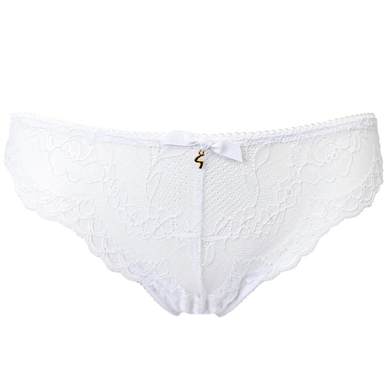 Klasyczne figi łączą w sobie elementy z ekskluzywnej koronki o filigranowym splocie i z delikatnie prześwitującej siateczki. Złota zawieszka w kształcie logo producenta zawieszona z przodu pod efektowną kokardką to obowiązkowy detal w kolekcji Superboost Lace. Całość prezentuje się lekko, zgrabnie i bardzo powabnie!