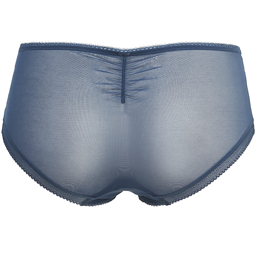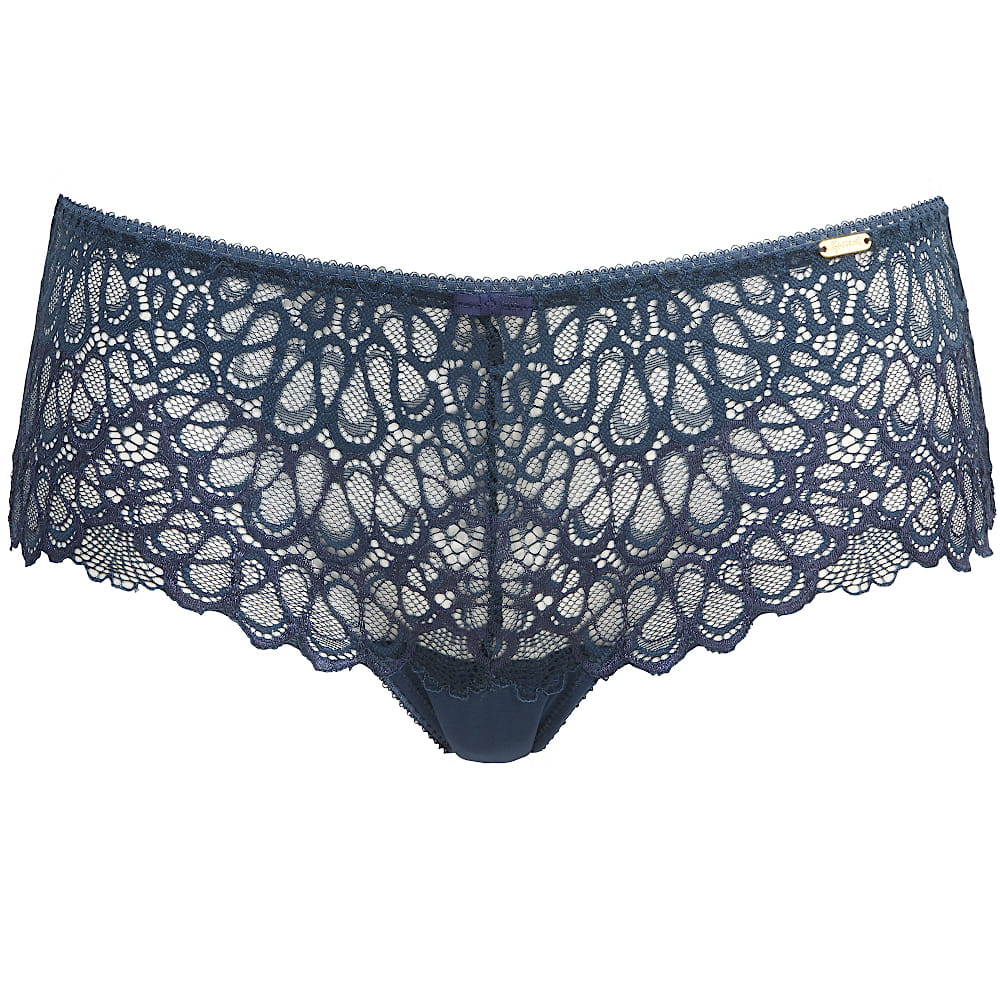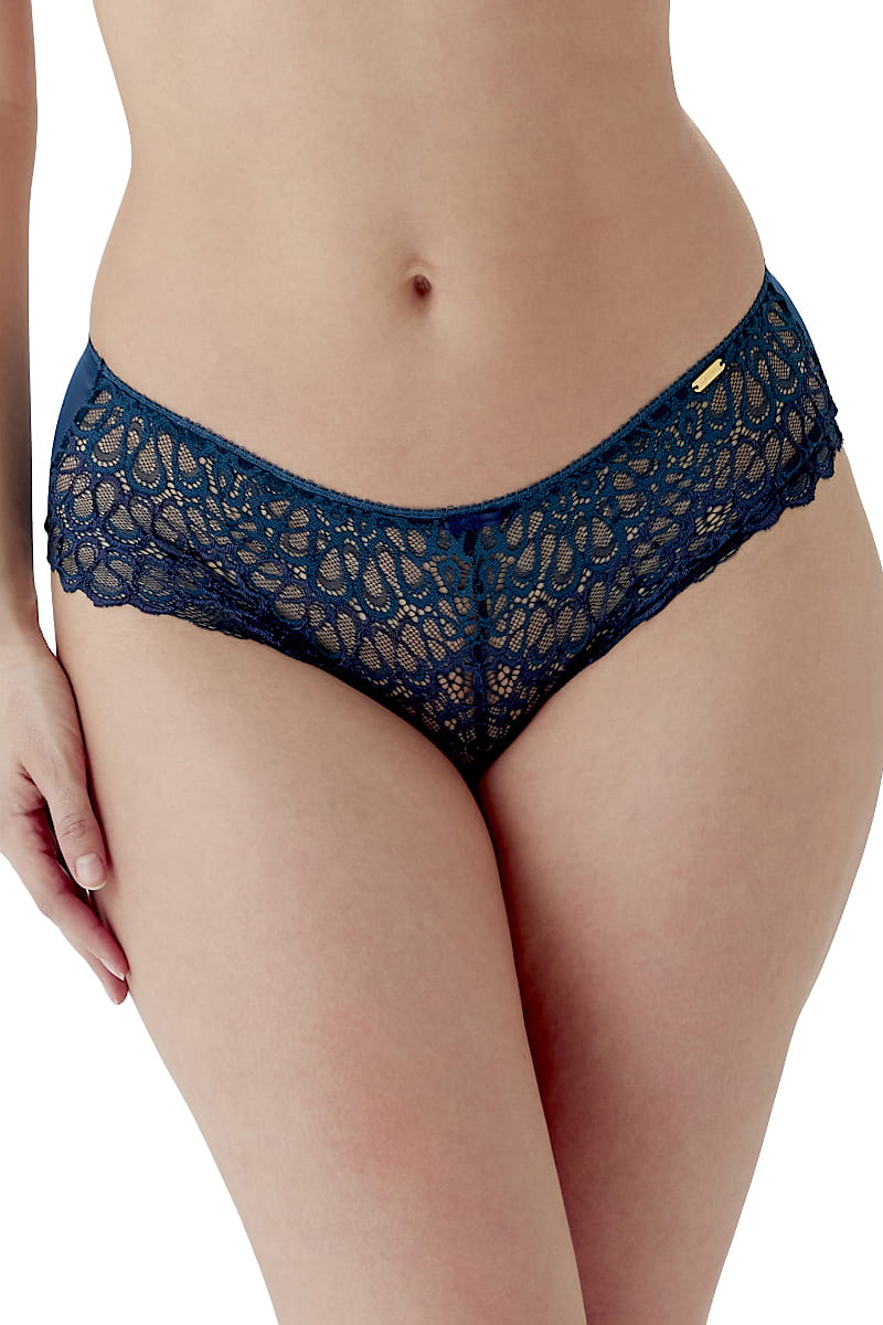 Klasyczne w kroju szorty wykonane z elastycznej koronki mieniącej się w dwóch tonach. Tył wykonany z półprzejrzystej siateczki z dodatkowym szwem podkreślającym kształty.
