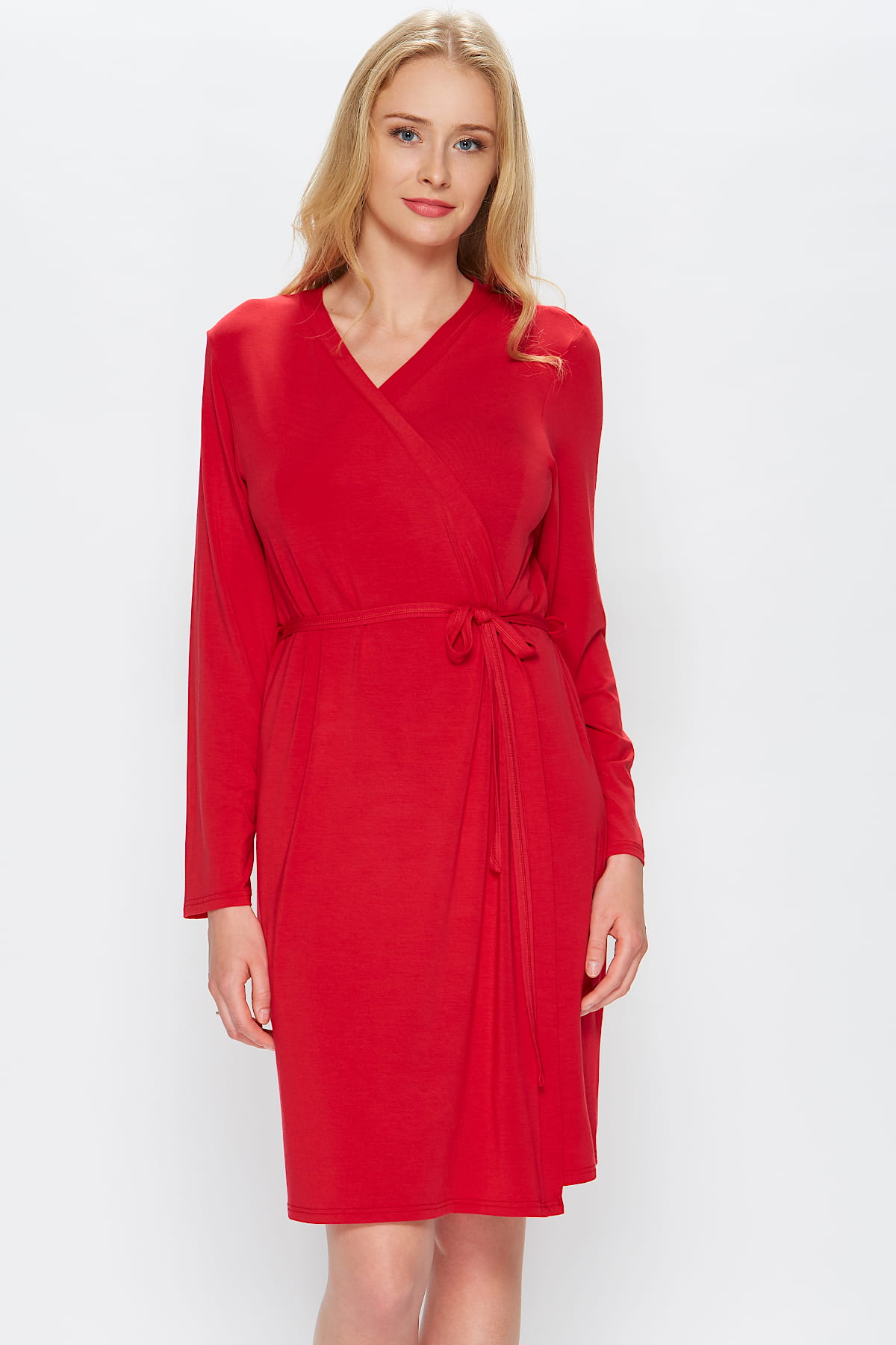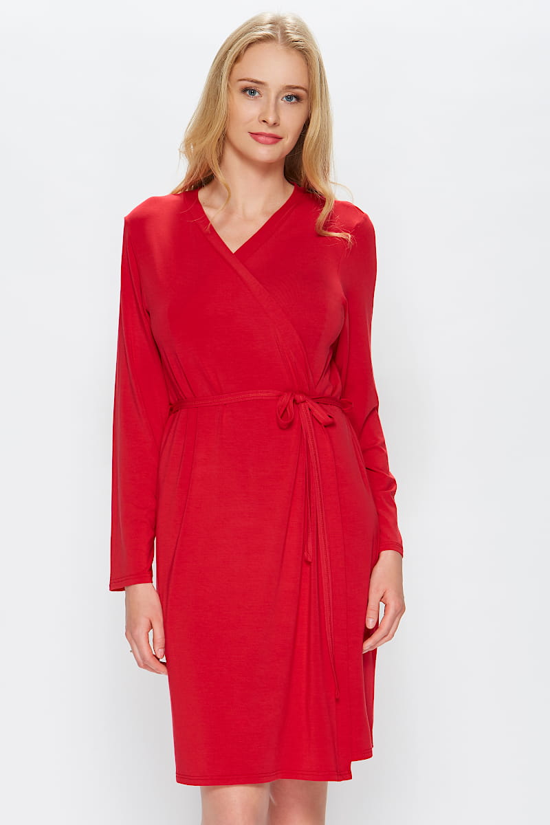 Szlafrok w kolorze tango czerwień od polskiej marki Miss Fabio. Przyjemny w dotyku i delikatny dla skóry - wykonany z mieszkanki bawełny z modalem. Otuli ciało i zmysły :) Skompletuj z koszulką nocną również od Miss Fabio!