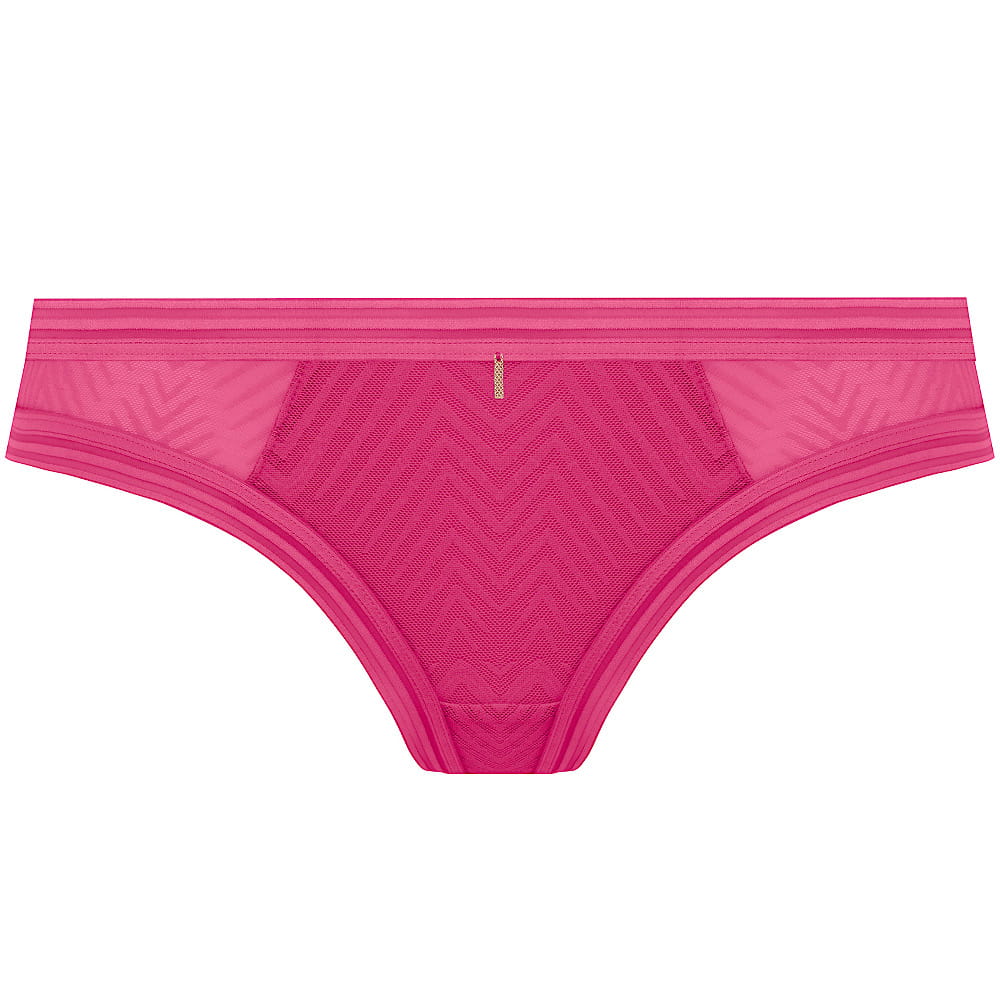 Figi o kroju brazylijskim z kolekcji Tailored od Freya. Model wykonano z elastycznej koronki z geometrycznym motywem. Tył wykonany bezszwowo znika pod lejącymi i obcisłymi ubraniami.