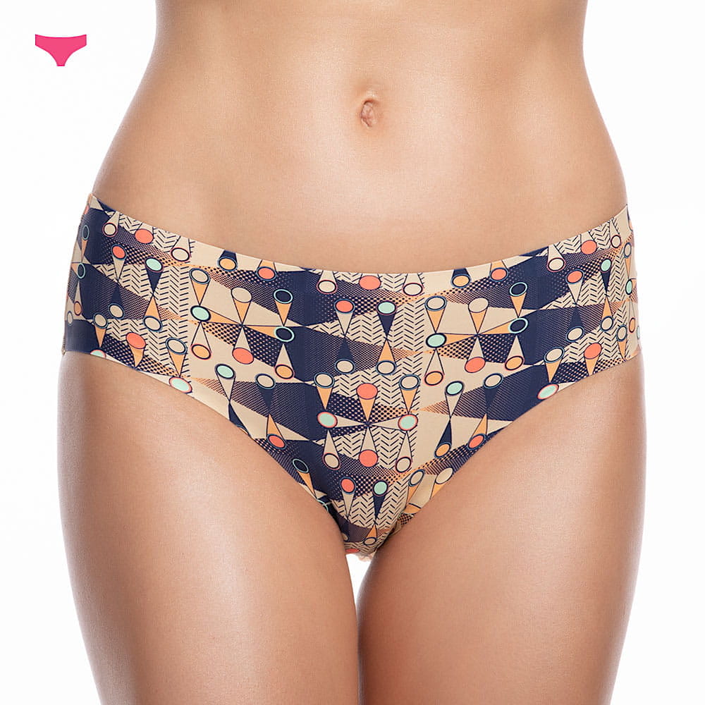 Stonowane tło w połączeniu z wyrazistą czerwienią i zielenią pobudzają i motywują. Niczym sygnalizacja świetlna, pokierują Twoją wewnętrzną mocą. Ostre trójkąty i romby w połączeniu z łagodnymi kropkami i kołami tworzą inspirujący wzór, pełen harmonii. Pobudza do działania, pomagając Ci zrealizować Twoje plany. Sięgnij po majtki damskie w ten wyjątkowy wzór i czerp moc z kolorów. Koniecznie sprawdź wszystkie wzory z dropu City Life od Paloma Pink.